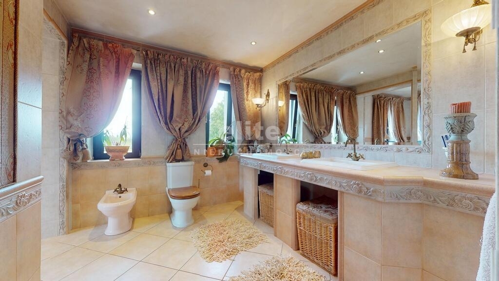 Dom otoczony jest przepięknym ogrodem, liczne nasadzenia, krzewy, oczko wodne, w pełni zautomatyzowany system nawadniania. Na terenie posesji znajduje się również domek gościnny (salon z aneksem kuchennym plus dwie sypialnie, łazienka z wc), sauna i jacuzzi. Standard pomieszczeń - foto.