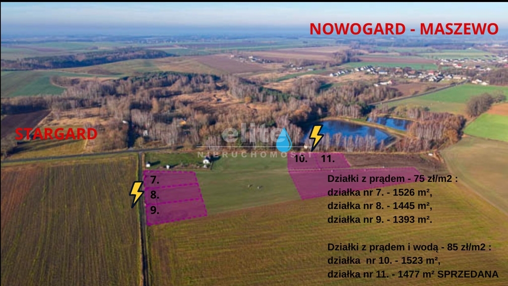 Działki z doprowadzonym PRĄDEM I WODĄ z sieci gminnej - cena 85 zł brutto /m2.