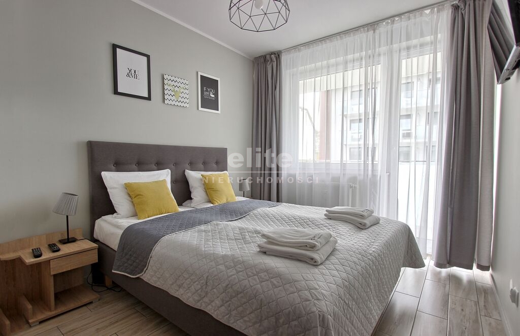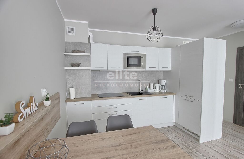 Apartament umeblowany, ładnie i wygodnie urządzony. Powierzchnia to prawie 38 m2. Składa się z salonu z rozkładaną kanapą, w pełni wyposażonego aneksu kuchennego oraz sypialni z łożem małżeńskim i łazienki z prysznicem. Dodatkowym atutem jest taras na który można wyjść z sypialni, jak i z salonu. W budynku znajduje się siłownia, rowerownia, a na dachu taras z leżakami. Teren obiektu jest ogrodzony. Budynek wybudowany przez solidnego kołobrzeskiego dewelopera, dobrze zarządzany. Koszty utrzymania to około 600 zł. Ogrzewanie i ciepła woda z sieci miejskiej.