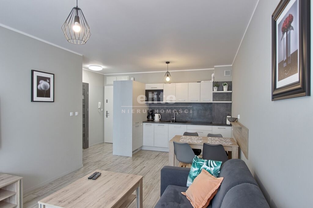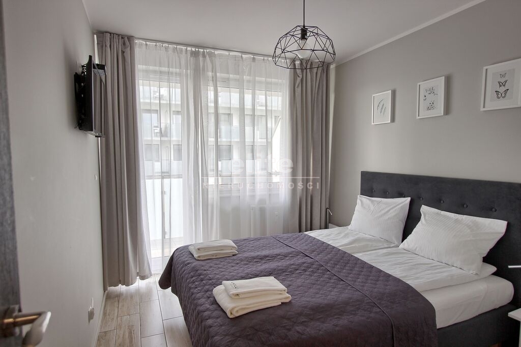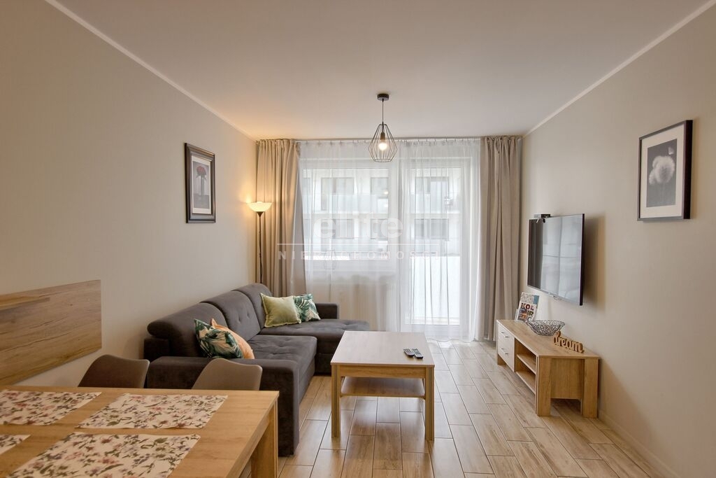 Apartament umeblowany, ładnie i wygodnie urządzony. Powierzchnia to prawie 38 m2. Składa się z salonu z rozkładaną kanapą, w pełni wyposażonego aneksu kuchennego oraz sypialni z łożem małżeńskim i łazienki z prysznicem. Dodatkowym atutem jest taras na który można wyjść z sypialni, jak i z salonu. W budynku znajduje się siłownia, rowerownia, a na dachu taras z leżakami. Teren obiektu jest ogrodzony. Budynek wybudowany przez solidnego kołobrzeskiego dewelopera, dobrze zarządzany. Koszty utrzymania to około 600 zł. Ogrzewanie i ciepła woda z sieci miejskiej.