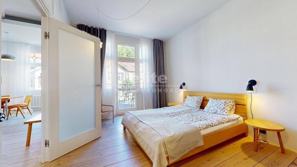 Apartament znajduje się na 1 piętrze budynku z 1926 roku, przy ul. Ludowej, w odległości około 300 m od wejścia na plażę. W pobliżu znajdują się liczne restauracje, kawiarnie, sklepy.