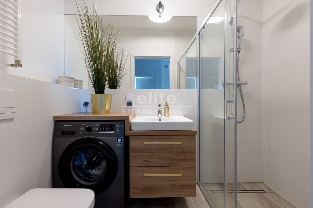 - Kuchnia wyposażona w meble kuchenne, oraz sprzęt AGD: płyta indukcyjna, zmywarka, piekarnik lodówka, okap, mikrofala