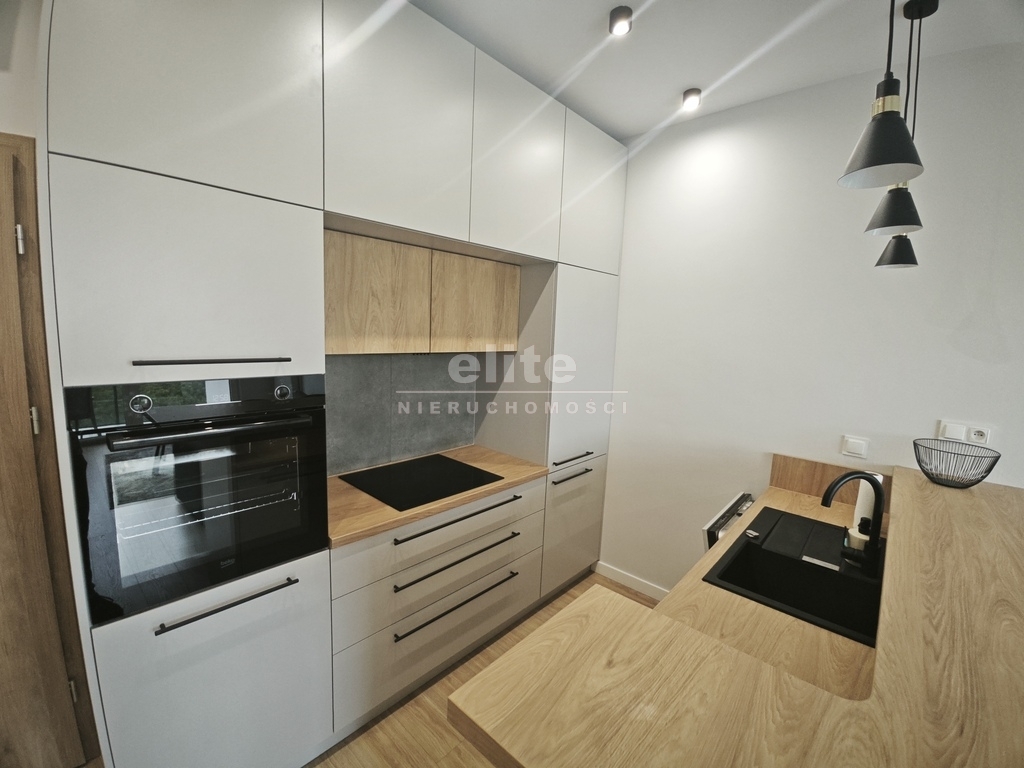- Kuchnia w pełni umeblowana i wyposażona w sprzęt AGD (płyta elektryczna, piekarnik, zmywarka, lodówka, okap)