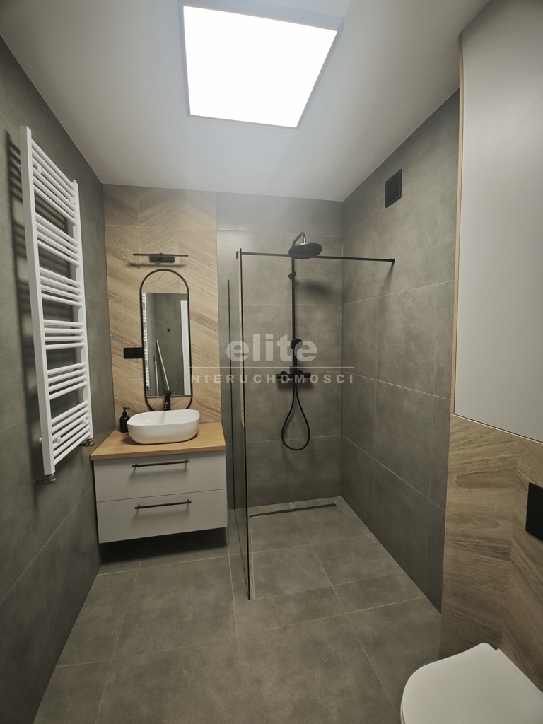 - Nowoczesna łazienka z kabiną prysznicową i WC