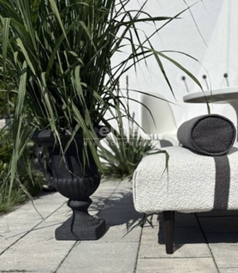 Ogród z instalacją oświetleniową, z pięknymi nasadzeniami i fajnie zorganizowanym tarasem stanowi odpowiednią przestrzeń do relaksu.