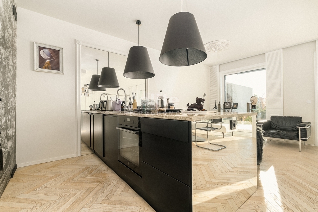 - Kuchnia: Blat na wyspie wykonany z naturalnego granitu.