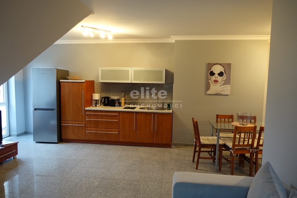 Apartment with an area of 94.1 m2 located 100 m from the entrance to the beach in Międzyzdroje at Gryfa Pomorskiego Street. Just go through a small forest and there is a beach by the sea in a quiet western location. At the Aqamarina promenade. Green area, fenced with parking spaces only for owners. BUILDING DESCRIPTION: building built of blocks∑ 2 2006. APARTMENT DESCRIPTION: Two-level apartment. Each level is a separate apartment with a separate entrance from the staircase, furnished and equipped with items necessary for everyday use. Each of them has a living room with kitchenette, bedroom, bathroom and balcony. Ideal as a ready-made investment product. LEVEL I: living room with kitchenette in it with built-in furniture, fridge, electric hob, oven, fridge, sink, tiles and terracotta in the bathroom, washing machine, shower cubicle, washbasin, built-in wardrobe in the bedroom. LEVEL II: slight slopes, living room with kitchenette with fitted furniture, fridge, electric hob, fridge, sink, tiles and terracotta in the bathroom, washing machine, shower cubicle, washbasin, fitted wardrobe in the bedroom. Terracotta floors, PVC windows, terracotta on the balconies, space for a table and chairs, good quality door joinery on each level, anti-burglary entrance door. The apartment can be used for your own needs and at the same time for rent or only for rent to two independent clients. Międzyzdroje is a holiday and tourist resort. A popular summer entertainment event is the European Festival of Stars, organized annually in July. RENT 890 PLN. The city is located on the Pomeranian Bay, in the central part of the coast of Wolin Island, 14 km north-east of Świnoujście, 14 km north-west of the city of Wolin and 21 km south-west of Kamień Pomorski. 3 km southwest of it is Lake Wicko Małe, a bay of the Szczecin Lagoon. Międzyzdroje borders the Wolin National Park to the east and south. The layout of the rooms provides various accommodation options.