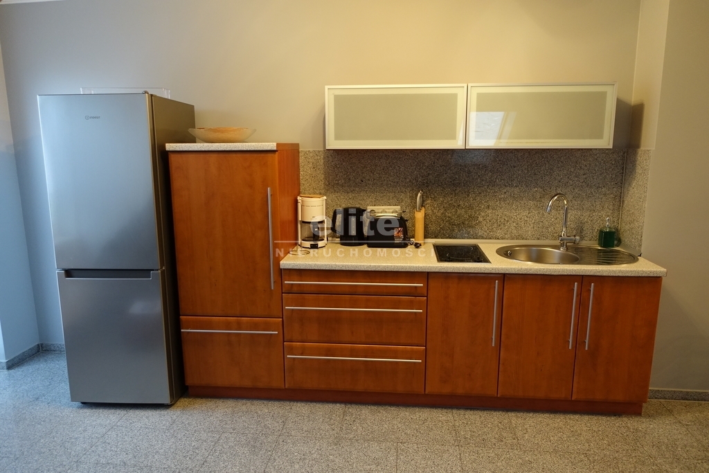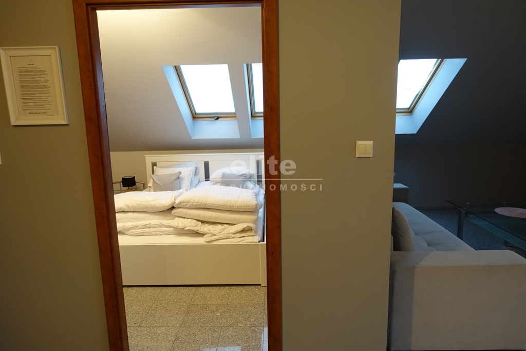 Apartament dwupoziomowy. Każdy poziom stanowi oddzielny apartament z oddzielnym wejściem z klatki schodowej, umeblowany i wyposażony w przedmioty niezbędne do codziennego użytku. W każdym z nich jest salon z aneksem kuchennym, sypialnia, łazienka i balkon. Idealny jako gotowy produkt inwestycyjny.